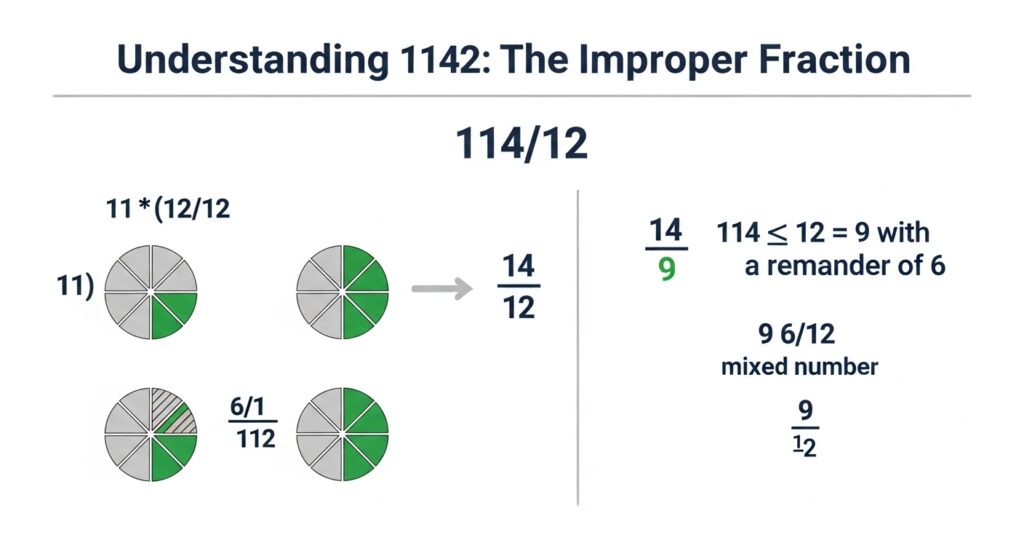 So first things first, 114/12 – improper fraction. An improper fraction is one where the numerator is bigger than the denominator. Sounds simple, right? But let’s unpack it with a little story.